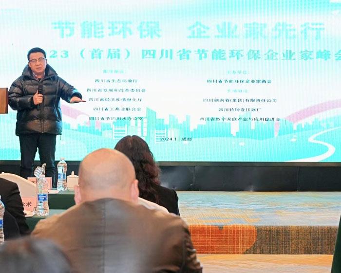 颁奖之后,四川省节能环保企业家商会邀请了获奖的5家企业领导,分享在节能环保领域的经验。祥和节能集团与祥和涂装集团董事长兼总经理伍泽涌高级工程师,向参会人员分享了祥和人在研发“华夏祥和系统保护型节能变压器”过程中的理念、思路和方法,赢得了与会人员的热烈掌声。