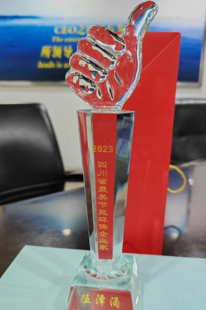 祥和节能集团与祥和涂装集团董事长兼总工程师伍泽涌高级工程师荣获,《2023四川最美节能环保企业家》称号奖杯