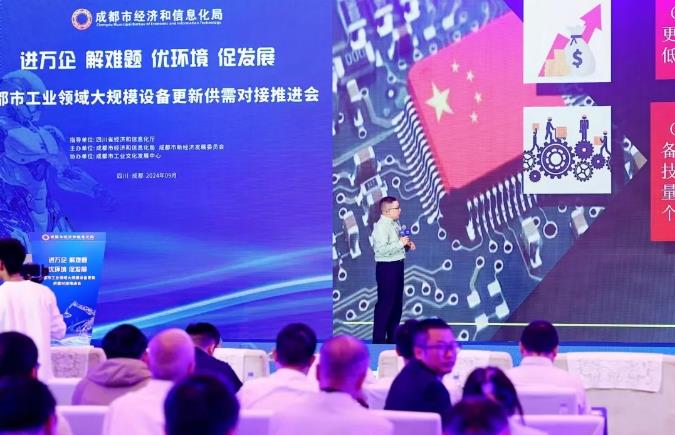 进万企、解难题、优环境、促发展的《成都市工业领域大规模设备更新供需对接会》,于2024年9月30日上午9:30~11:30时,在成都国际会议中心隆重举行。成都市人民政府副秘书长、成都市经信局市新经济委员会党组副书记、四川省经济和信息化厅副处长等省市政府代表,以及成都市各区县市政府代表、部分成都市协会代表、成都市工业企业代表等300多人参会。
